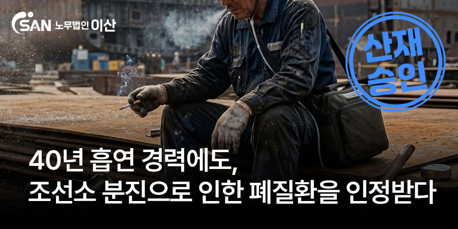 흡연력이 있거나 경력 증명이 어렵다는 이유로 포기하는 분들이 많습니다. 노무법인 이산은 보이지 않는 노출의 구조를 객관 자료와 의학적 근거로 정리하여 업무와 질병의 연결고리를 찾아냅니다. 포기하기 전에 먼저 상담해 보시길 권합니다.