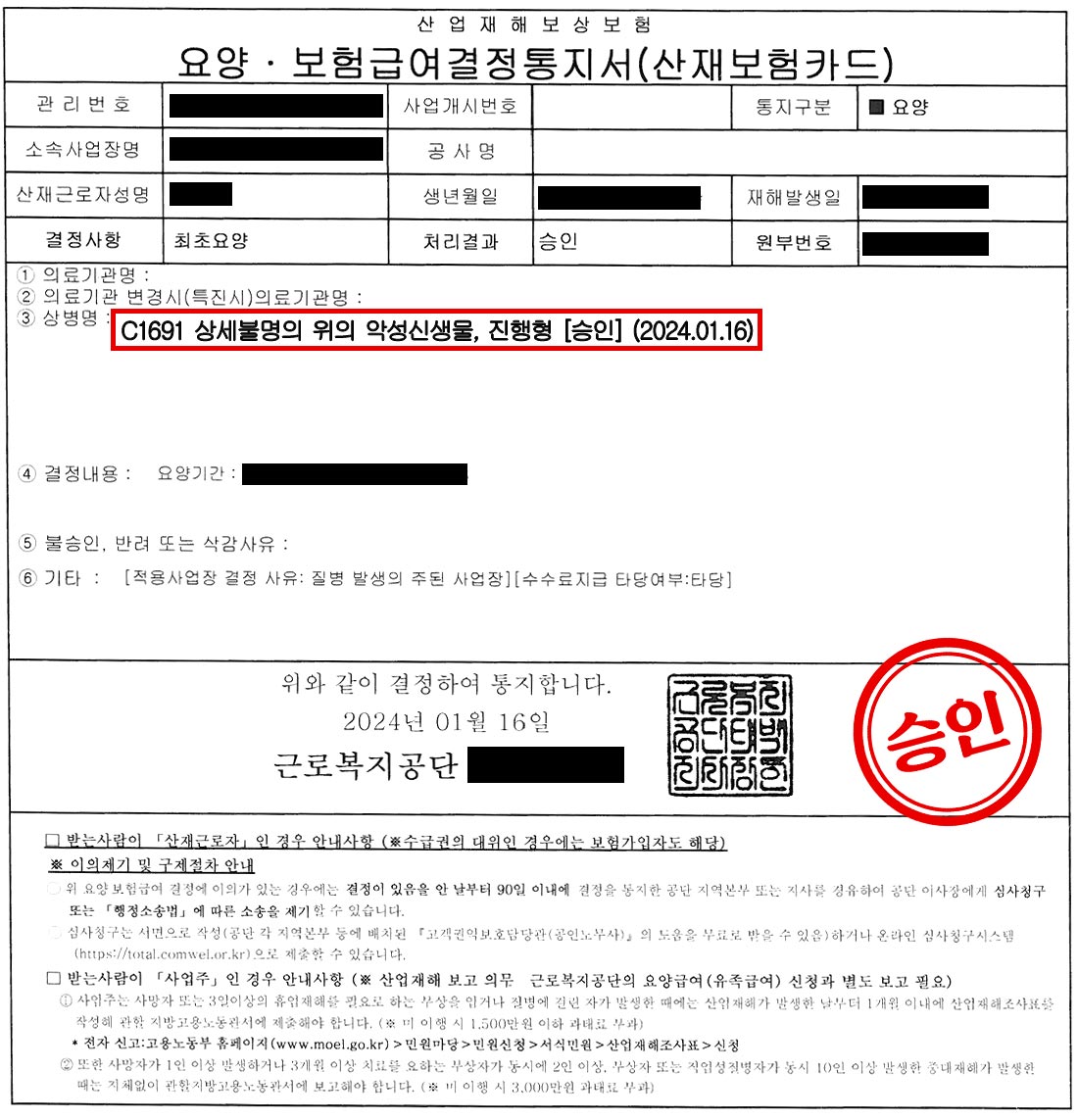 업무상질병판정위원회는 진행성 위암을 업무상 질병으로 최종 인정했습니다.